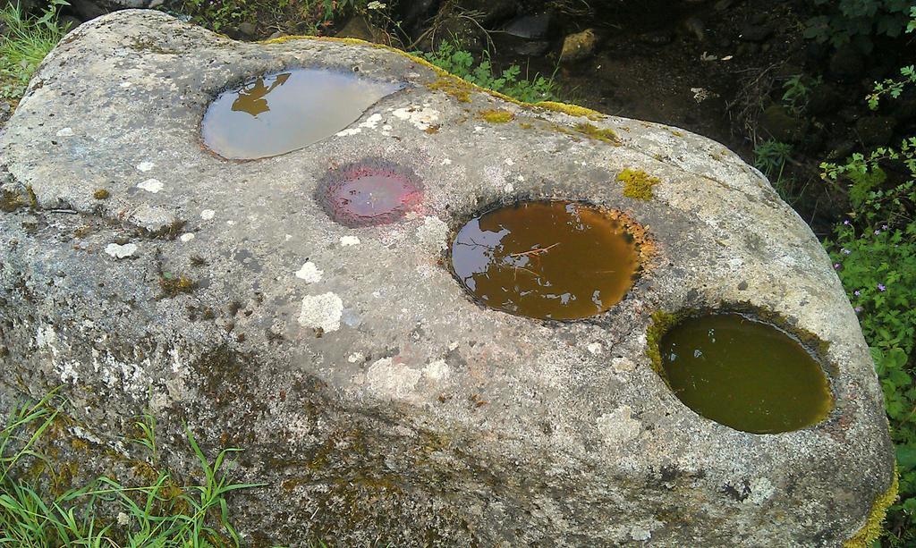 If some medieval bullauns within ecclesiastical contexts were used in metal processing, either prior to, or concurrently with, pilgrimage activity; then the possibility arises that residual traces of iron oxides within the ‘bowl’ may have had a similar effect as the one pictured. Standing out in the open air, being replenished with rain water, such features may have occasionally taken on an appearance of having a ‘blood red’ colour. If so, then the resulting symbolism and metaphor from a Christian perspective would have surely made for a powerful visual and quasi-mystical ‘statement’ in the landscape.
