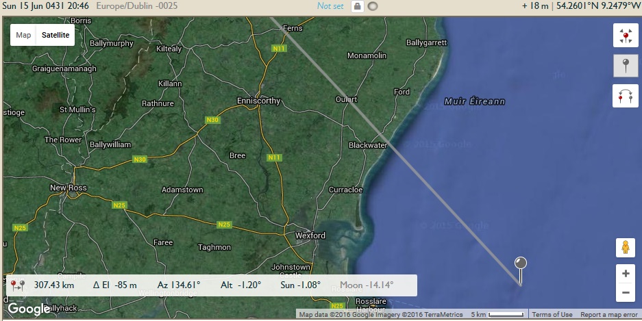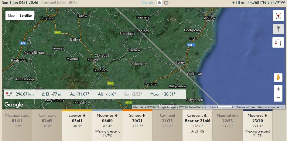 Turning your back to captivity, to enslavement, to the very setting sun itself, from North Country Mayo in Western Ireland during the fifth century would have provided a very simple direction to follow – South East. Running away into the unknown taking his bearings every evening, even if cloudy, would have brought him, eventually, to the South Eastern coastal extremities. Using a nifty web app, The Photographer’s Ephemeris (TPE) (available to download in a variety of operating systems) here’s how it would have worked: